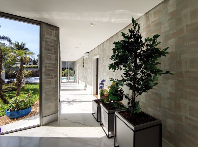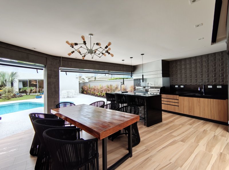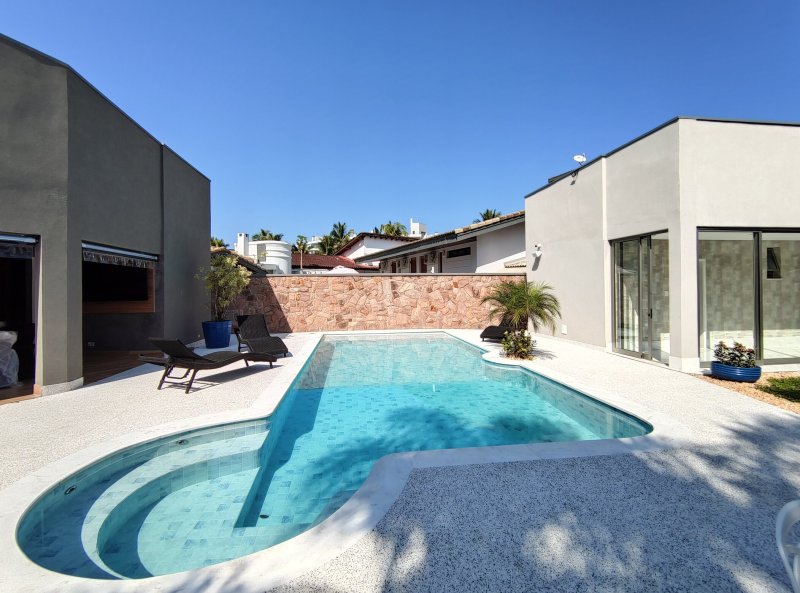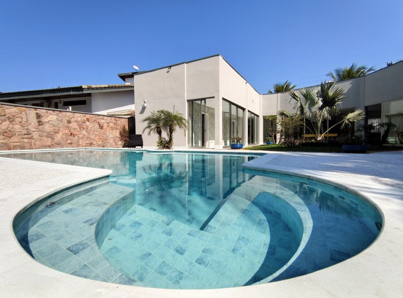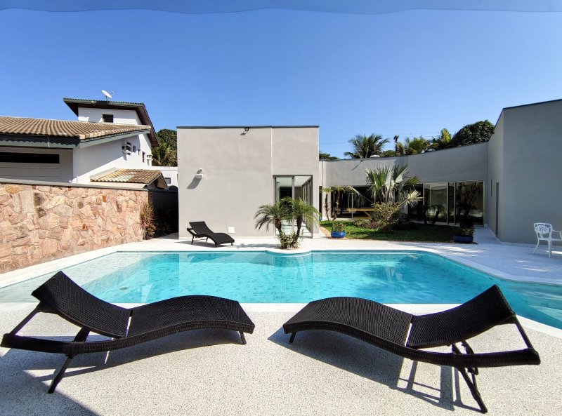 Casa térrea, totalmente reformada, mobiliada, decorada e climatizada, a qual dispõe de 6 suítes e 6 vagas de garagem, à venda na Riviera de São Lourenço - Módulo 5.
