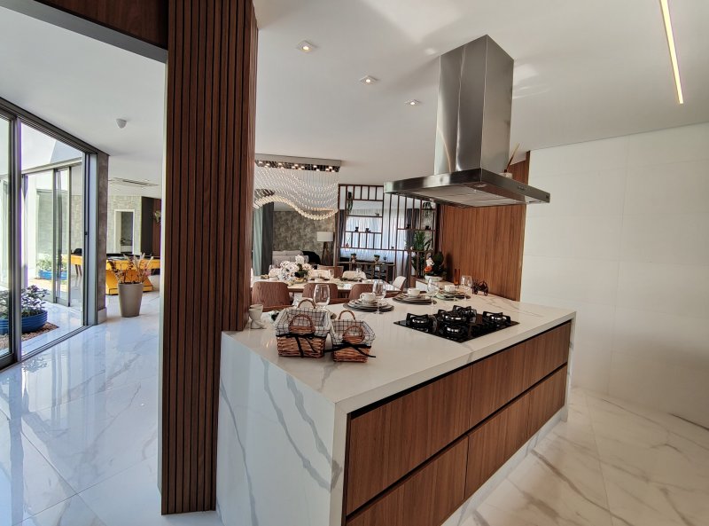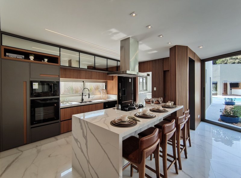 - Cozinha em conceito aberto, com ilha