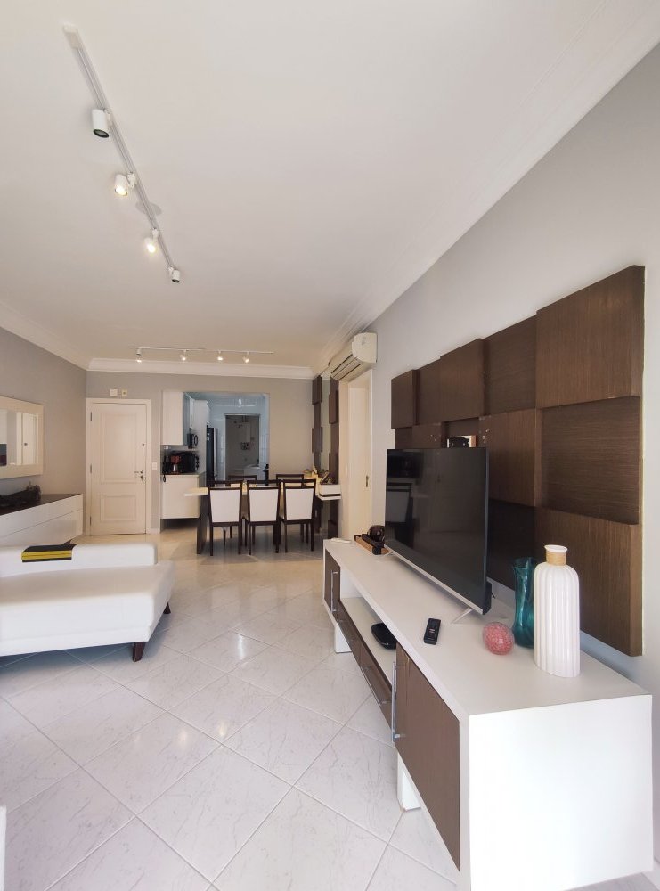 Apartamento pé na areia, mobiliado e climatizado, com 113,19 m², o qual dispõe de 3 dormitórios (1 suíte) e 2 vagas de garagem, à venda na Riviera de São Lourenço - Módulo 07 - Bertioga/SP.