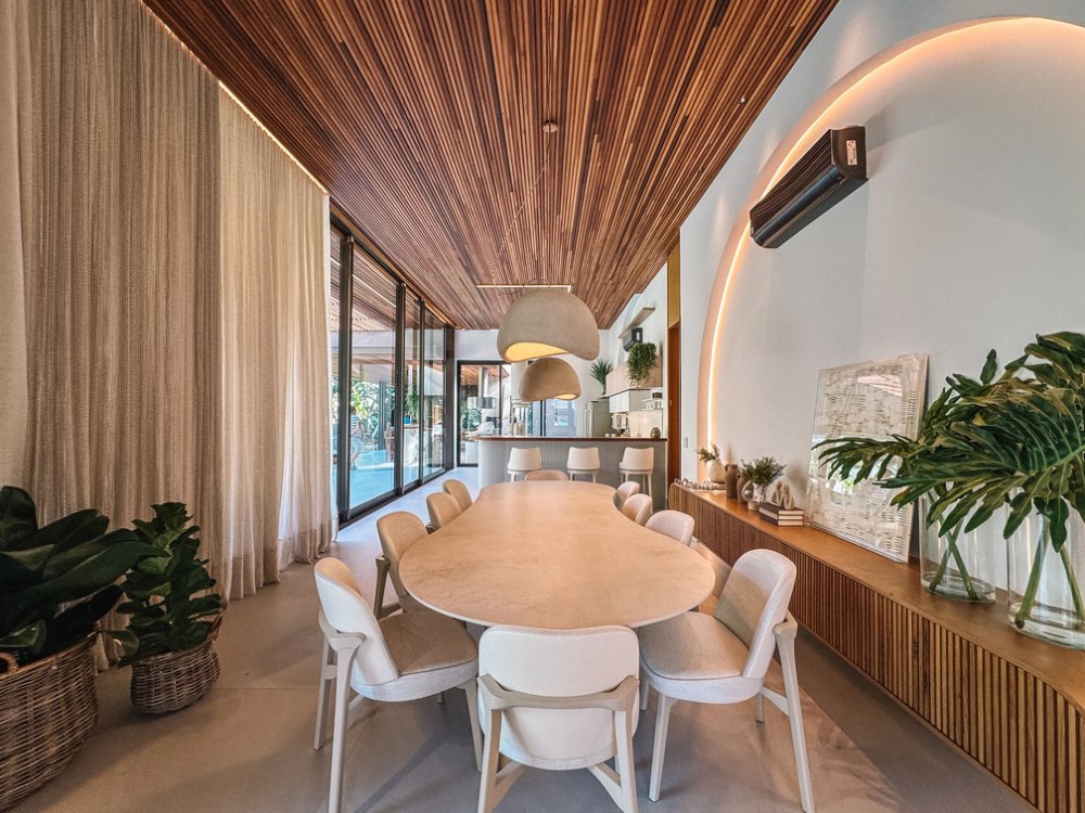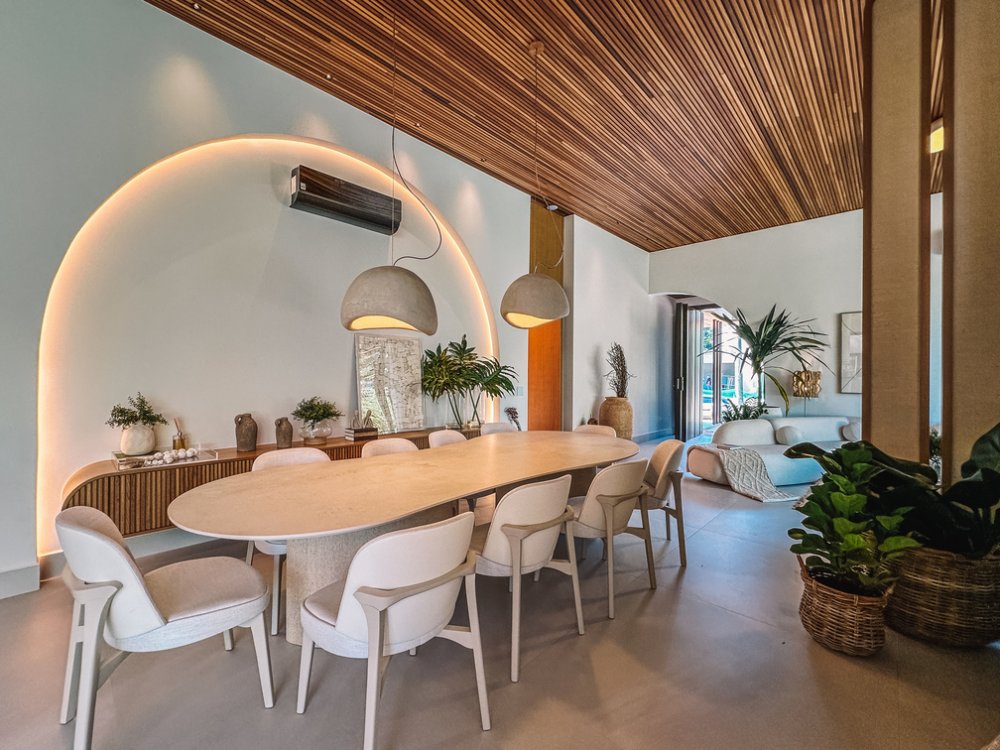 Casa térrea, mobiliada, decorada e climatizada, com 6 suítes e 6 vagas de garagem, à venda na Riviera de São Lourenço - Módulo 16 - Bertioga/SP.