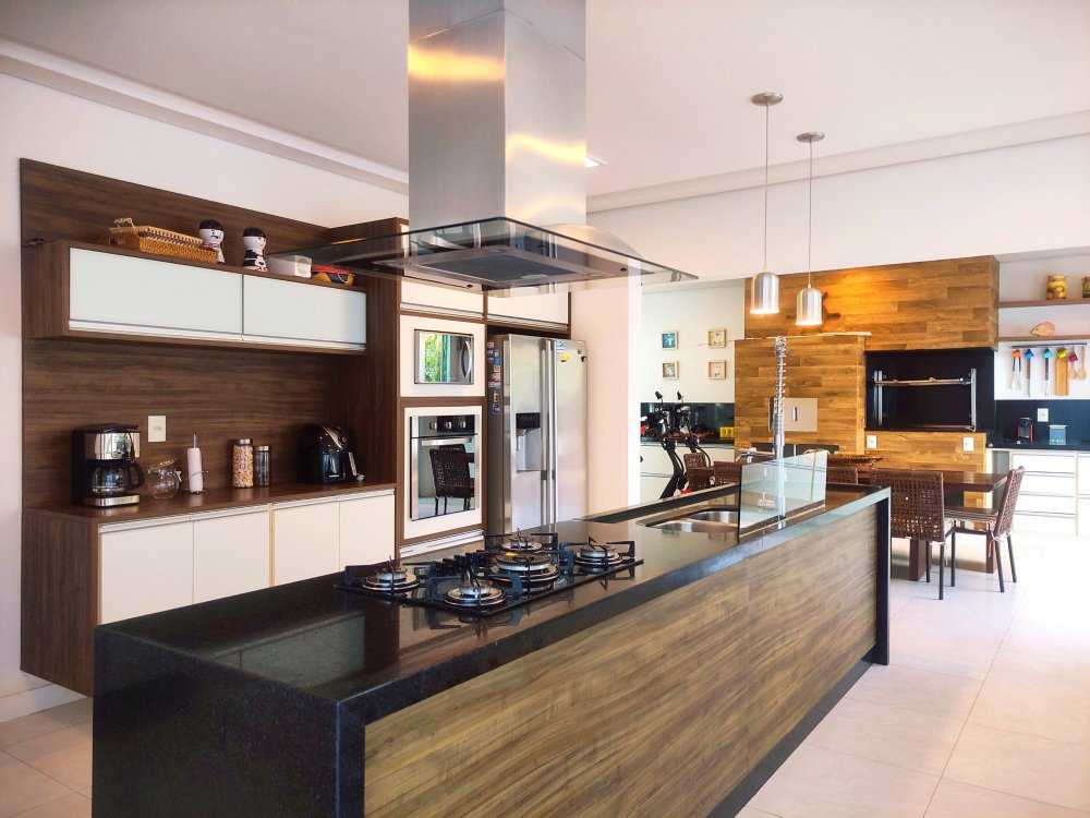 - Cozinha em conceito aberto anexa ao espaço gourmet