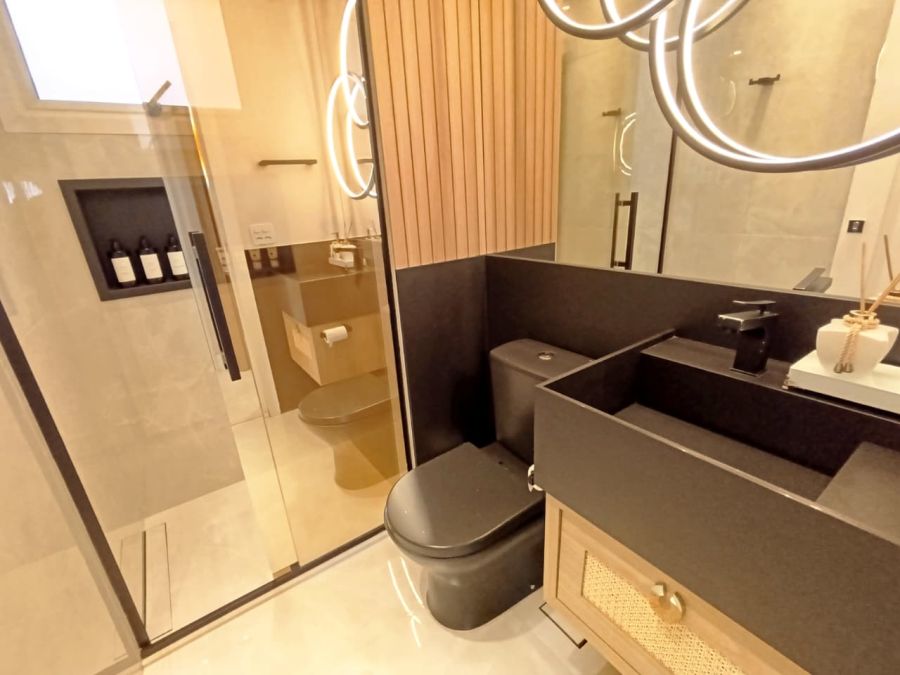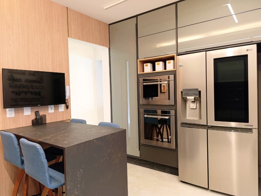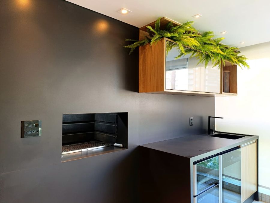 - Varanda gourmet com fechamento em vidro (climatizada)